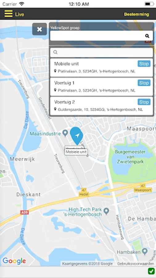 Follow your vehicle (s) connected to the platform Live2 Spot Master is now even easier with the Live2 App.