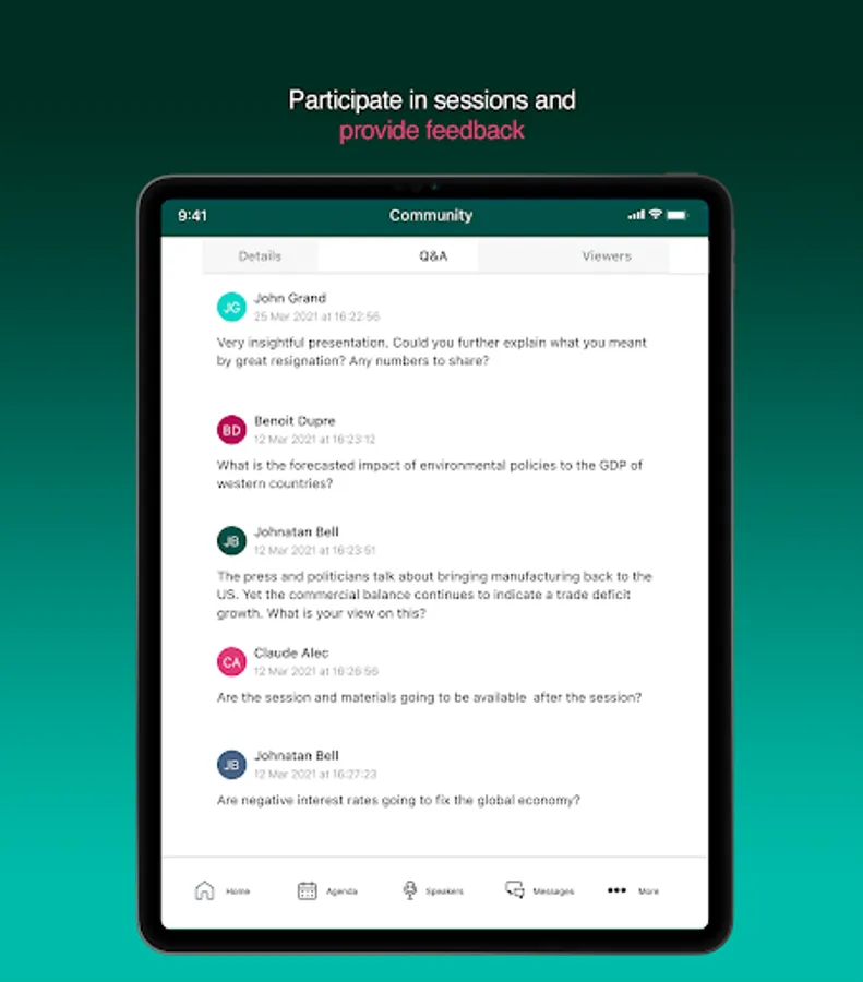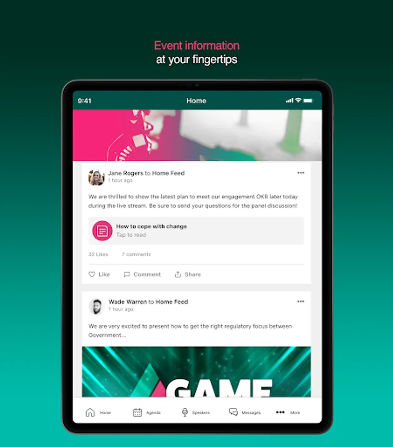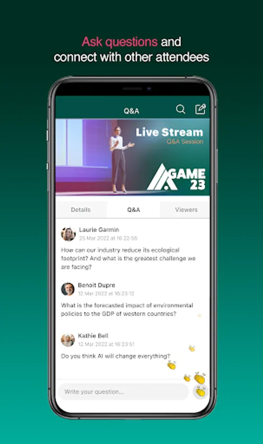 The AGame23 app allows users to participate and interact virtually and will includes the following features: