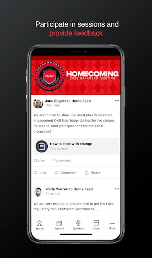 - Post updates to sessions, keynotes, and exhibitor booths.