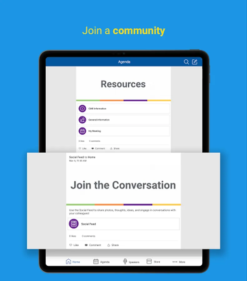 The app is designed to be a digital resource and guide for our event attendees. Features allow participants to connect, engage and manage their event experience.