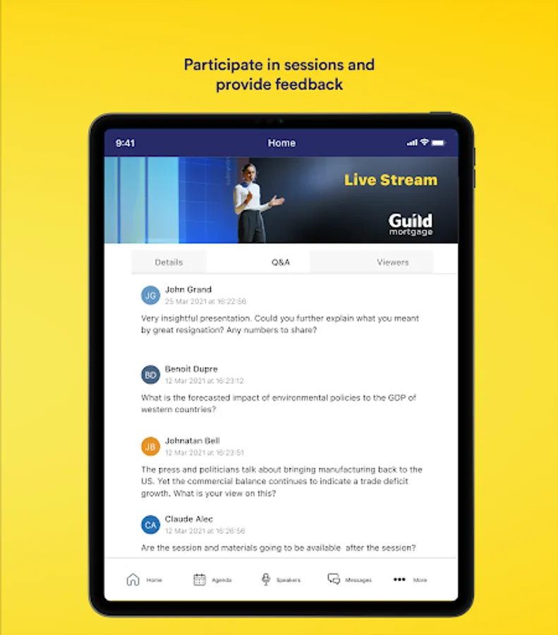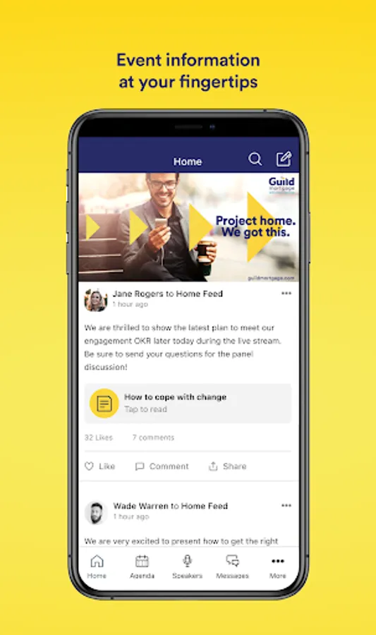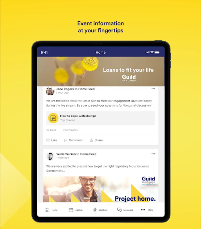 The Guild Mortgage Events app is utilized for all of our current and future events. In here, you can review schedules, maps, and network amongst attendees.