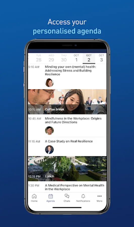 The app lets you sign up for sessions, view and block your schedule, and access any preparatory work at the touch of a button. It is also a secure and powerful networking platform, allowing you to message and connect with program colleagues to spark collaboration and future opportunities.