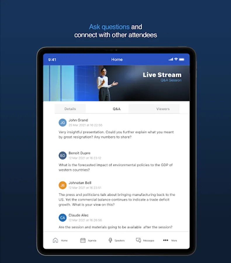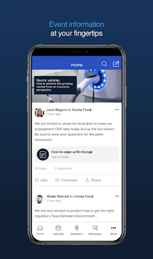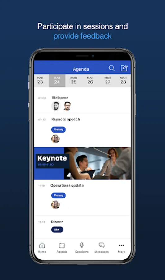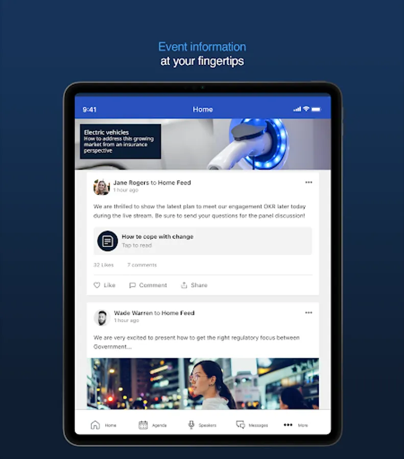Munich Re’s Event App is the official interactive mobile application for events hosted by Munich Re. It is designed to inform you about the activities at the event you are attending.