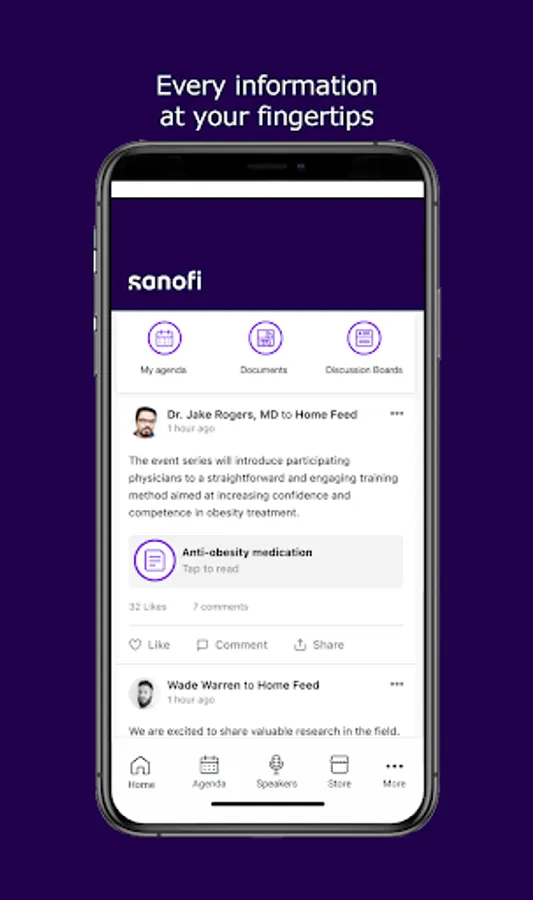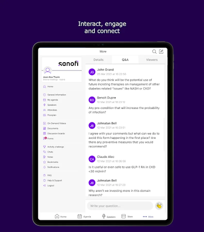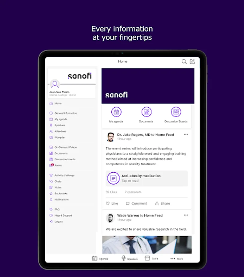 Enhance your experience using the official mobile app dedicated to the Sanofi Events & Congresses. The app provides registered delegates with a paperless environment and offers innovative ways for interaction and networking at the meetings. Some of the features include the following: