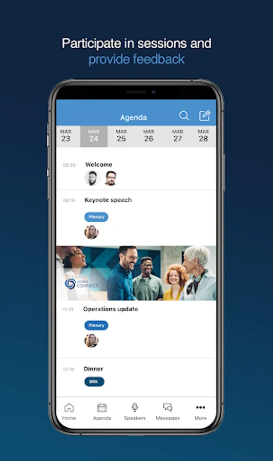 * personalized agendas, maps, documents, participant lists, note taking, questionnaires, session feedback, group messaging and anytime live changes of scheduling and events.