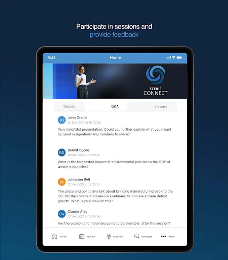 STERIS Connect (STE_Connect) is the app that provides information for all upcoming STERIS Meetings and Events. It offers a long list of features that help you connect, manage and engage at our meeting. It includes: