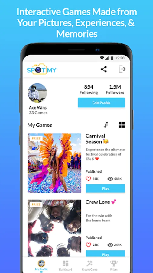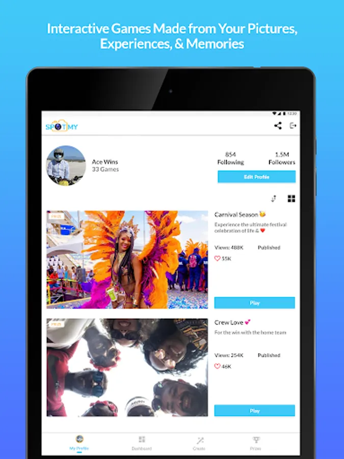 Interactive Spot the difference games created from a user's social media content and shared with family, friends and followers