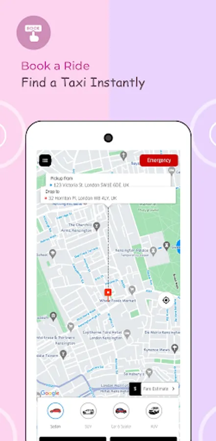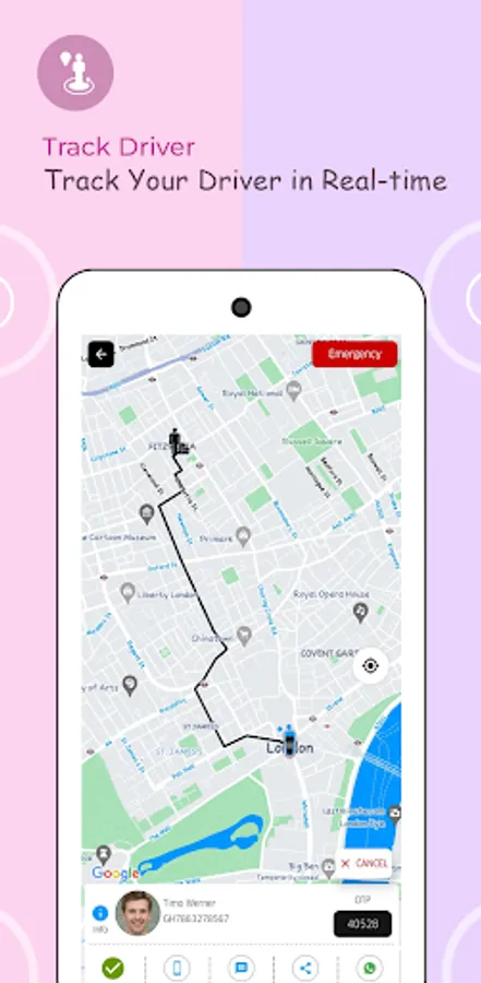 Emergency-SOS - Immediate alert is sent to personalized three contacts and a nearby police station.