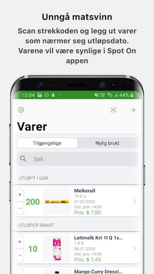 The SpotOn Store Admin app is for employees in chains and stores affiliated with Spot On Shop AS. Here you will have full access to post items to be sold before it has to be wasted. You can post items manually, for example, if the items do not have a barcode, or scan, then estimate the price and quantity before publishing. It can also be done completely automatically using the API.