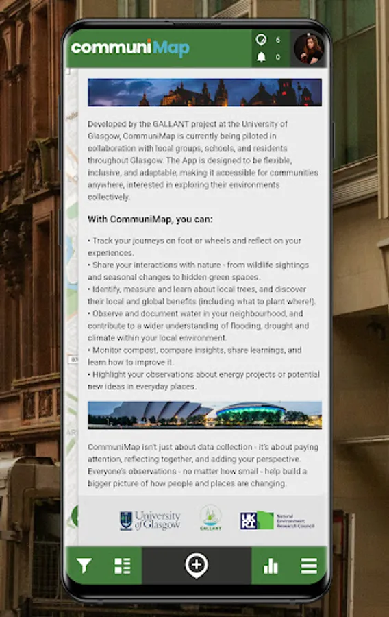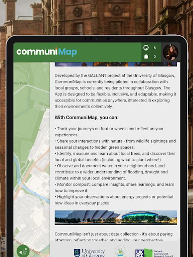 Developed by the GALLANT project at the University of Glasgow, CommuniMap is currently being piloted in collaboration with local groups, schools, and residents throughout Glasgow. The App is designed to be flexible, inclusive, and adaptable, making it accessible for communities anywhere, interested in exploring their environments collectively.
