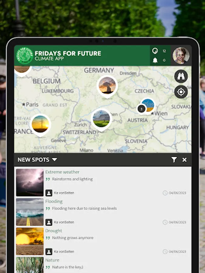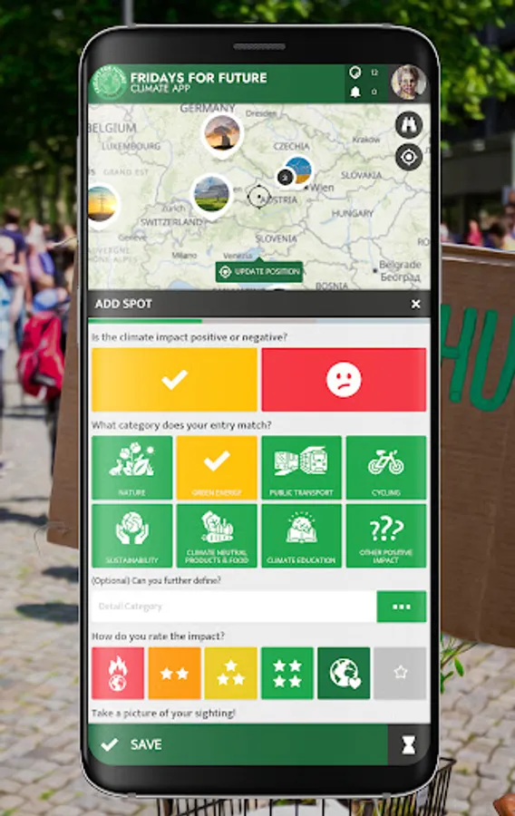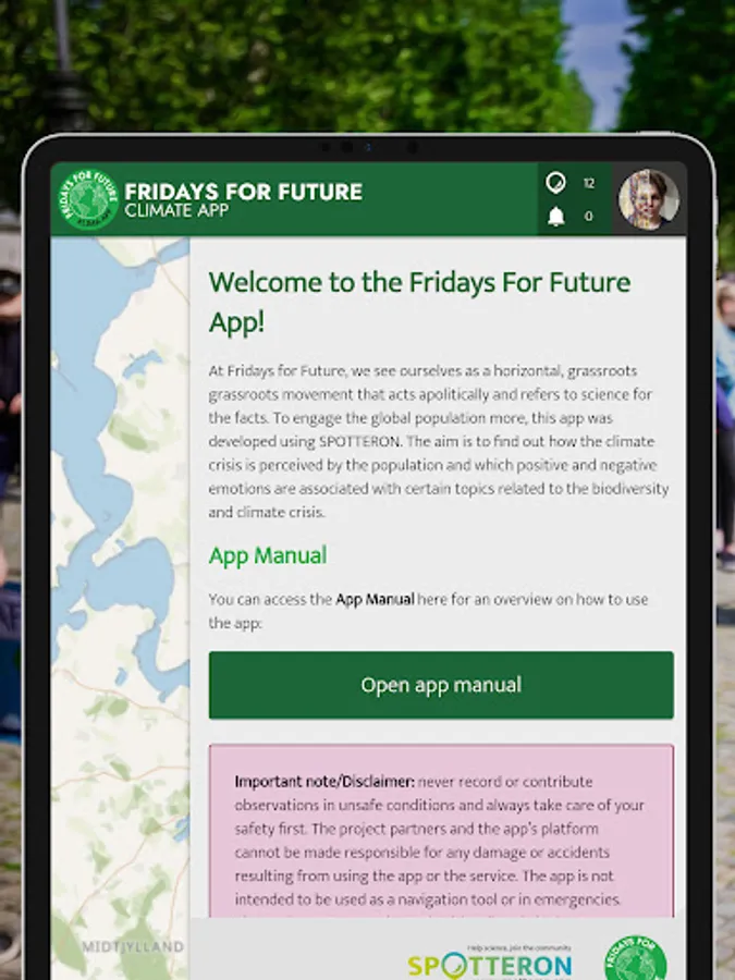 At Fridays for Future, we see ourselves as a horizontal, grassroots grassroots movement that acts impartially and refers to science for the facts. To engage the global population more, this app was developed using SPOTTERON. The aim is to find out how the climate crisis is perceived by the population and which positive and negative emotions are associated with certain topics related to the biodiversity and climate crisis.