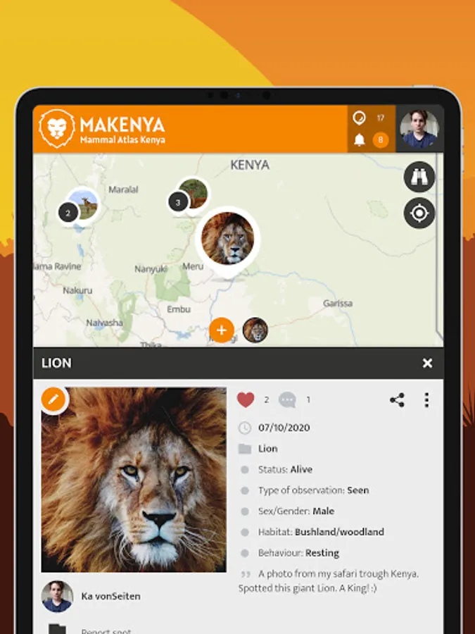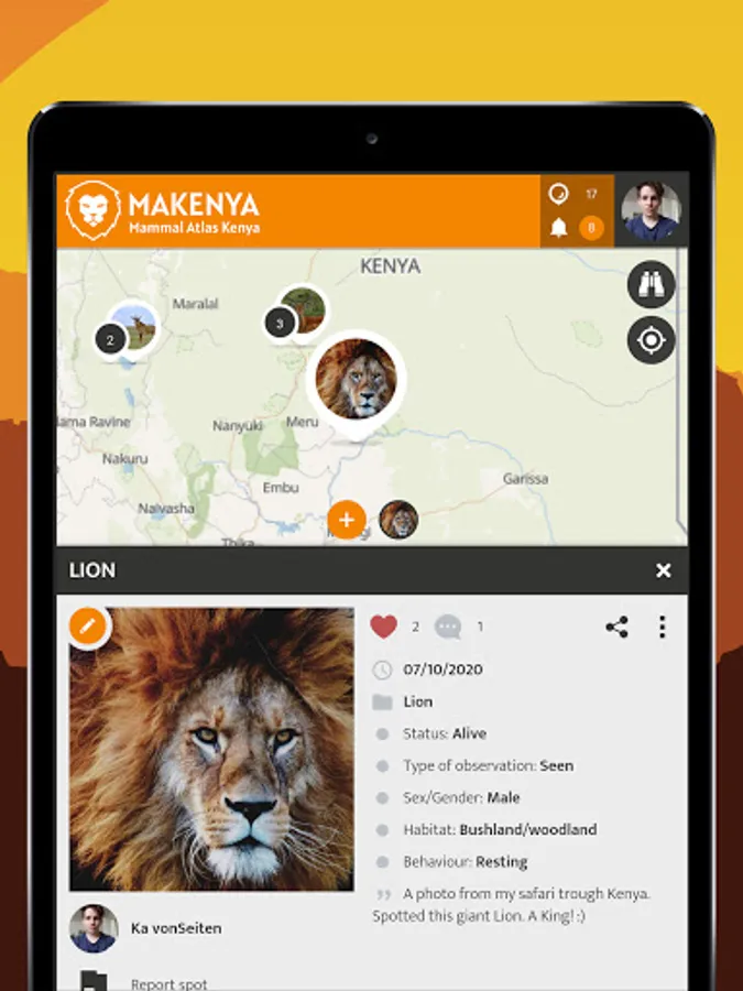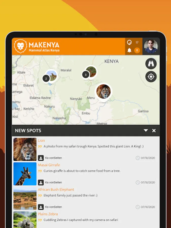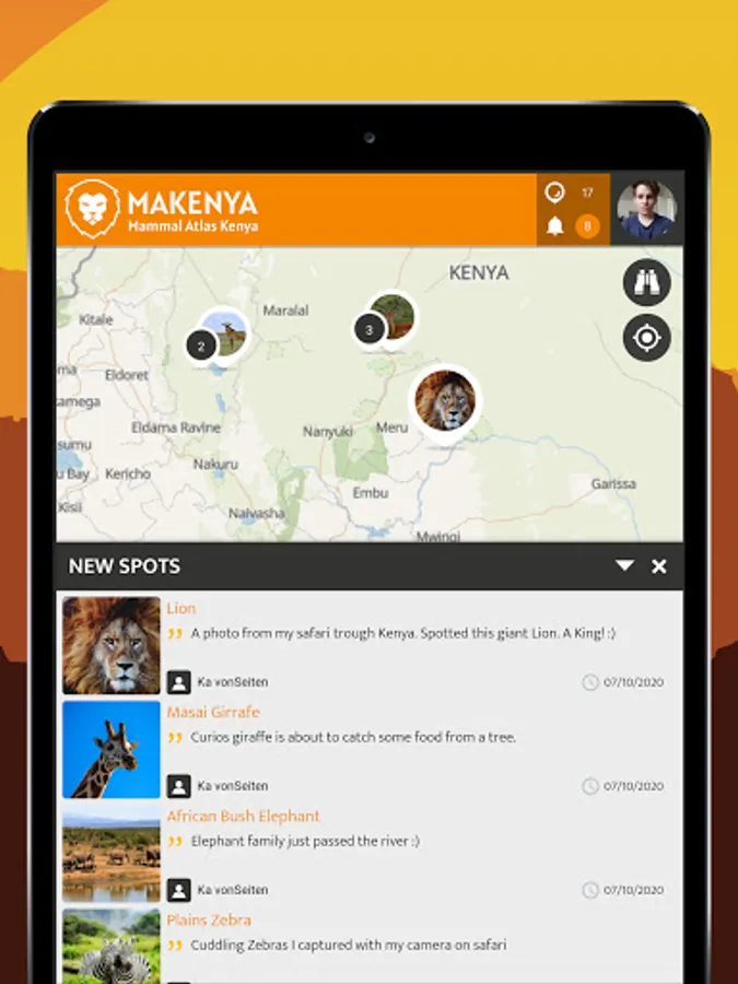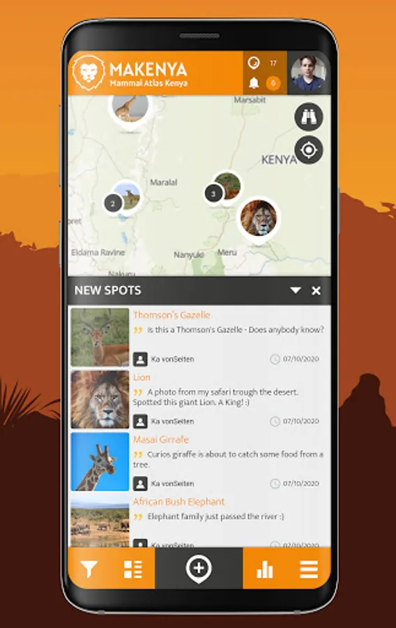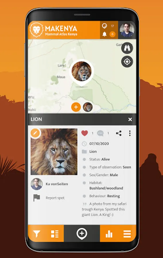 The MAKENYA - Mammal Atlas Kenya project is a Kenyan citizen (public) science mobile based application to monitor mammals. The MAKENYA app can be freely downloaded and installed on a smartphone for use to record and report any type of mammal species one sees anywhere in Kenya. Any record/sighting of mammal species submitted is useful data which can help save that species in the long run.