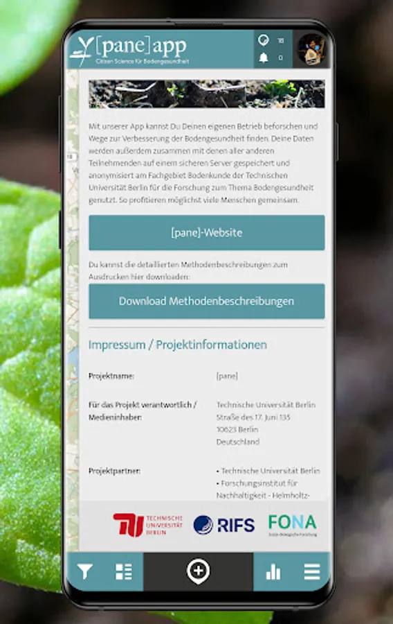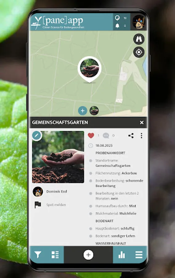 With our app, you can research your own farm and find ways to improve soil health. Your data will also be stored on a secure server along with that of all other participants and used anonymously at the Department of Soil Science at the Technical University of Berlin for research on soil health. This way, as many people as possible benefit together.
