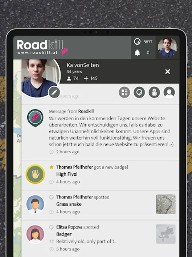 The Citizen Science App Roadkill collects entries from animals that have perished on the streets and evaluates them. With your submissions you help to protect the animals and the environment; with the help of the data obtained, hotspots are identified and defused in cooperation with NGOs and public administrations. Especially when you are out a lot in nature or in built-up areas, the app is on important companion to actively help with animal welfare and research.