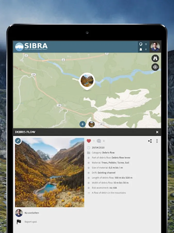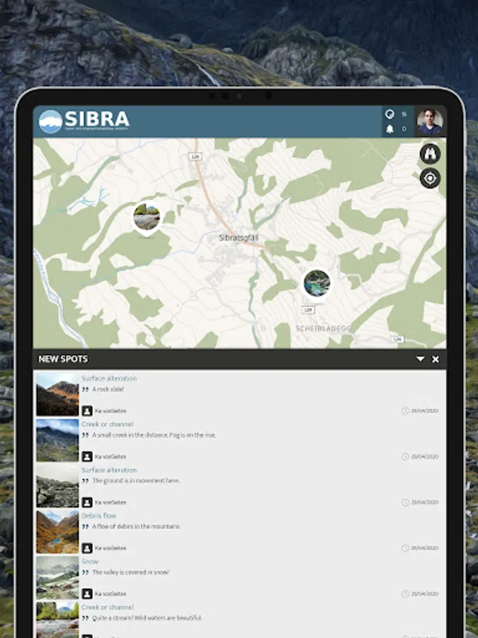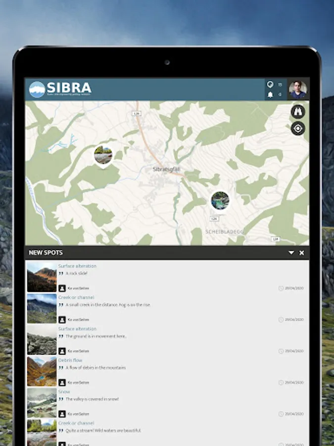 SIBRA stands for Systems-Integrating Bottom-up Research Application for Hydro- and Engineering Geology. And it also stands symbolic for the model region, in which the app was developed: together with committed citizens of Sibratsgfäll in the Austrian province Vorarlberg, a research project at the Geological Survey of Austria implemented an approach that involves those citizens, whose environment is in focus.