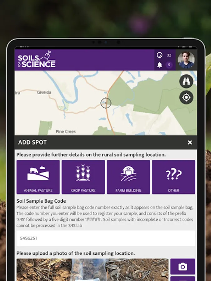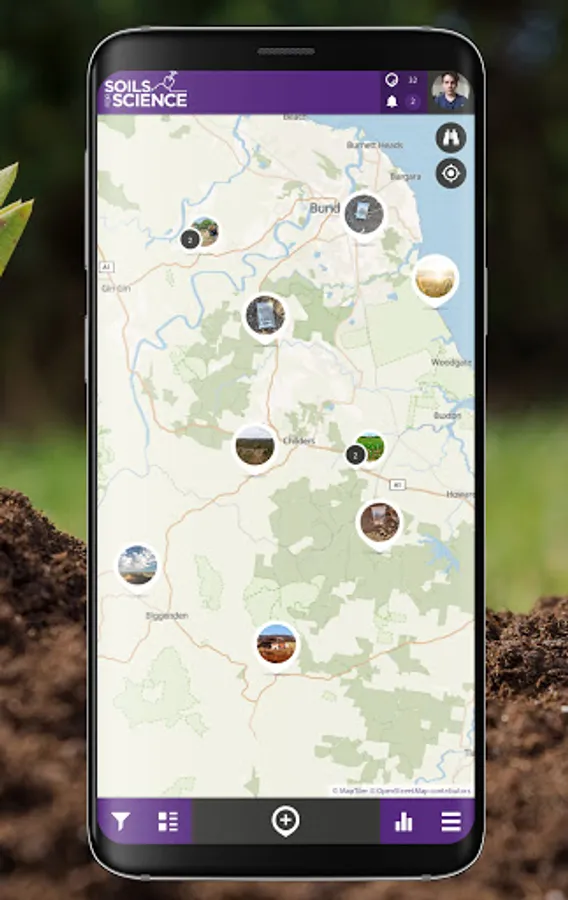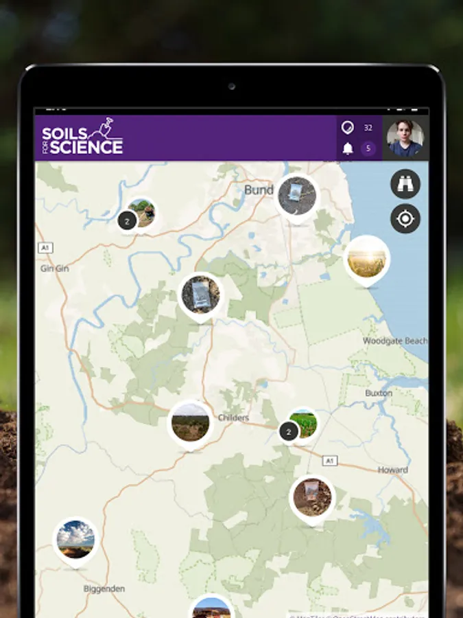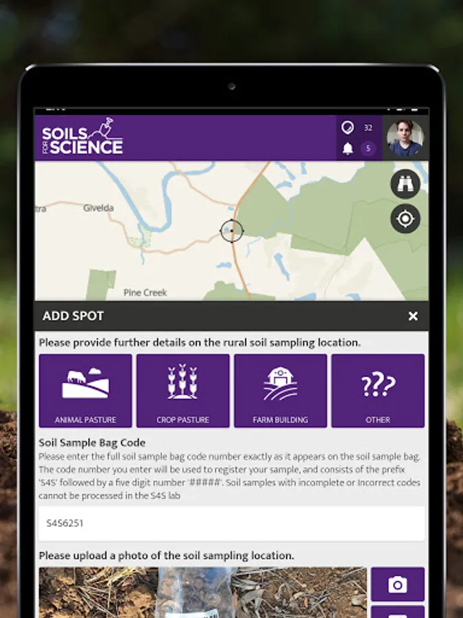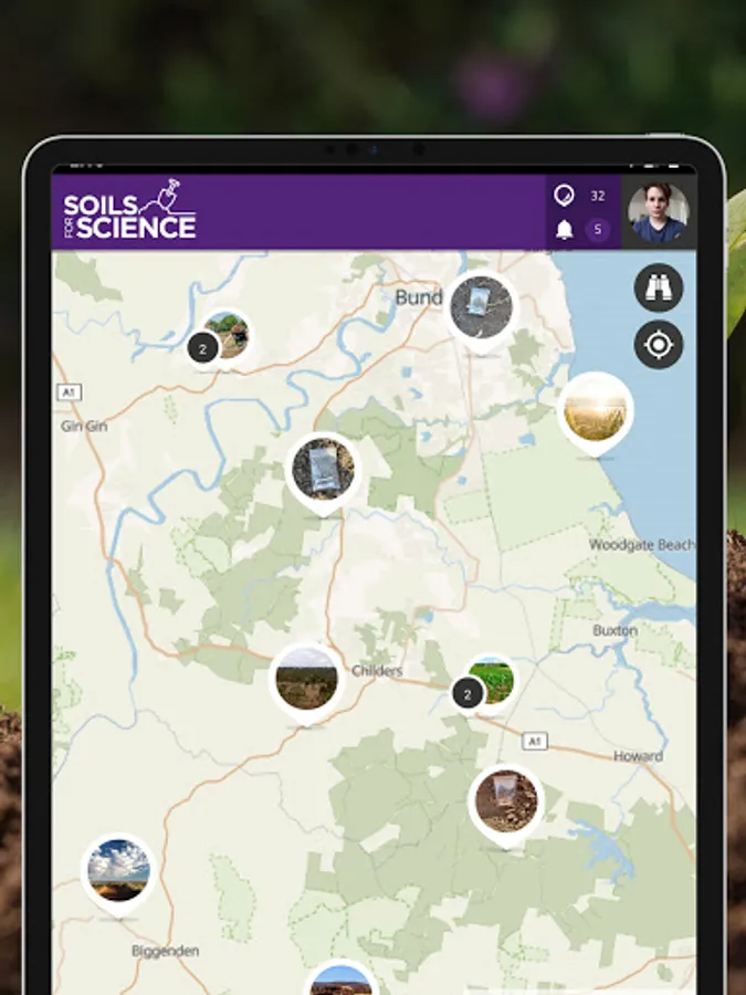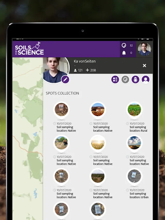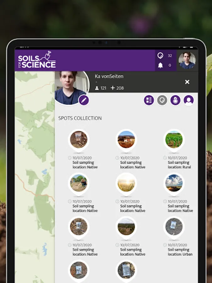 SOILS FOR SCIENCE Soils for Science (S4S) is a citizen science initiative of The University of Queensland, Institute for Molecular Bioscience. S4S provides the public with free sampling kits (visit soilsforscience.org.au) to collect soil samples rich in microbial biodiversity (bacteria and fungi). Pure microbes will be isolated by UQ researchers and used as a resource to search for new and improved antibiotics. High-resolution images of the microbial communities found in each soil sample will be uploaded to the S4S website, where the public can find their own sample(s), to zoom in and view the marvellous and miniature world of microbes. The App itself is running on the SPOTTERON Citizen Science platform.