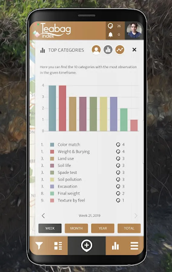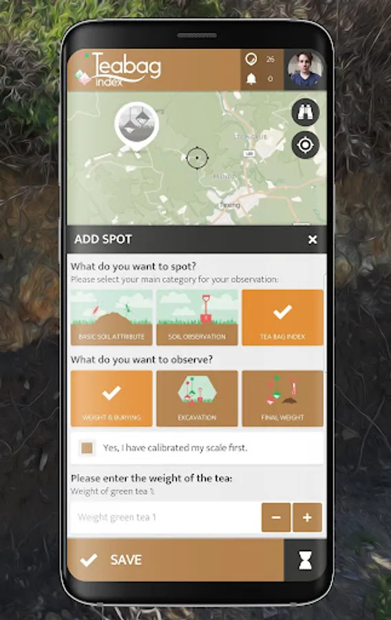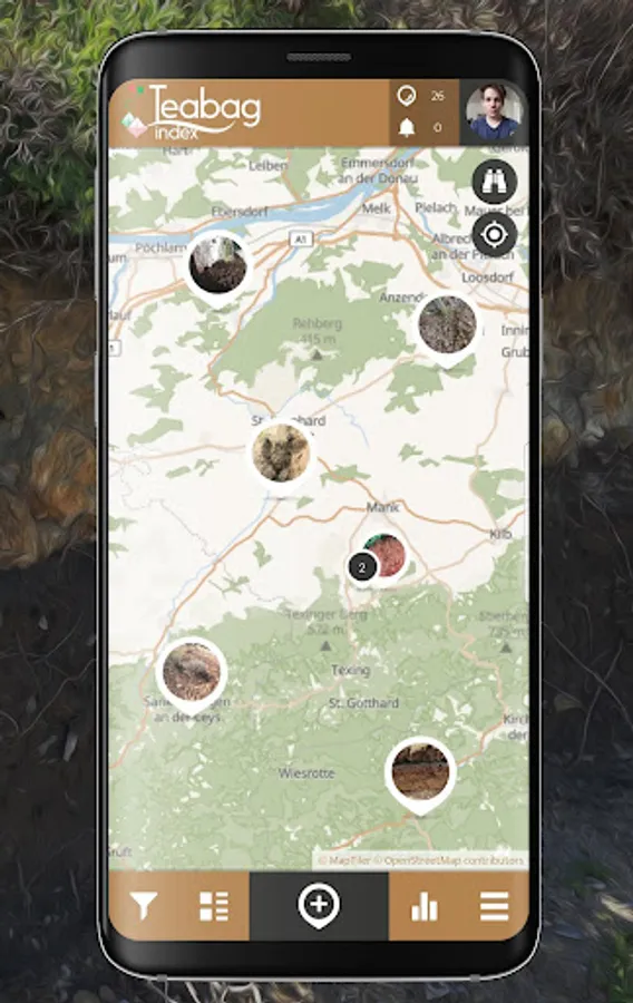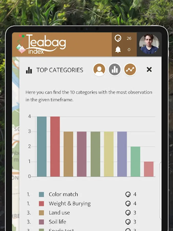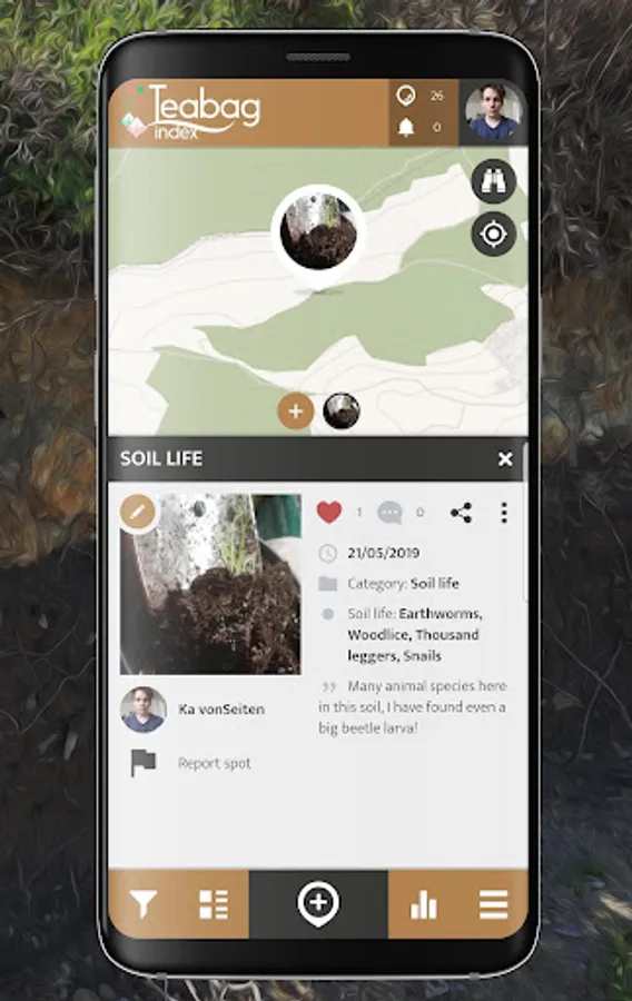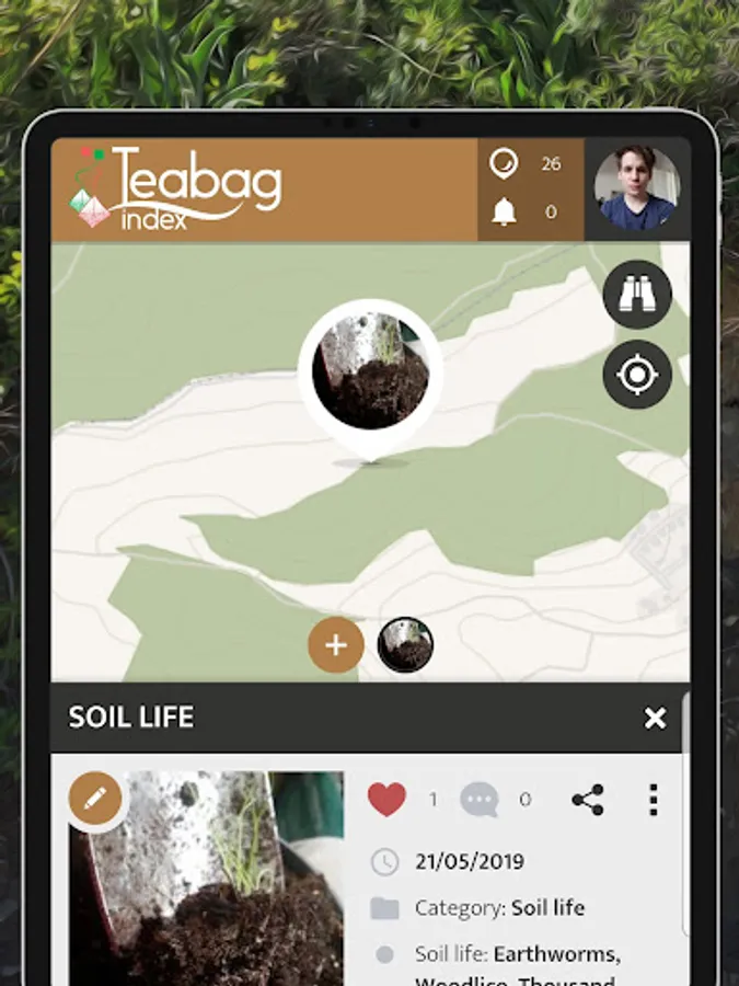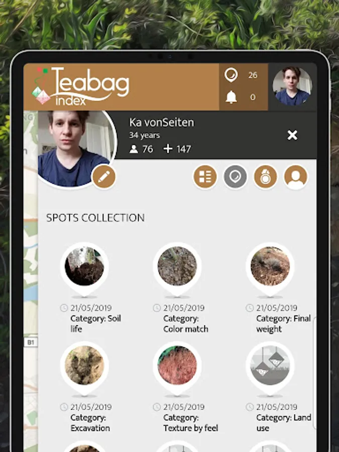 The educational App Tea Bag Index (TBI) collects data on soil observations and on soil decomposition dynamics in particular. The decomposition of organic matter in the soil is part of the global carbon cycle that provide information on the biological activity of the soil and is therefore important for climate change. Changes in the carbon content of soil can both intensify and mitigate climate change.