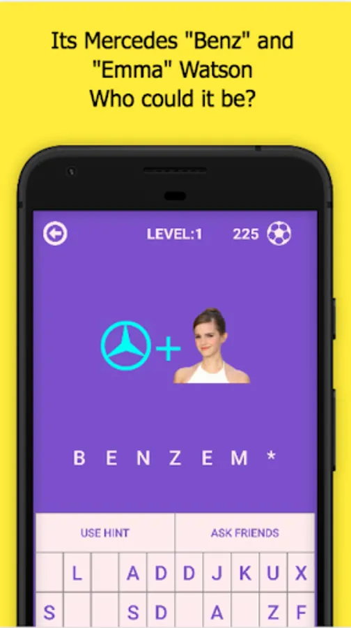 Sometimes you need to combine the pictures to guess the football player. For example, you will see logo of "Mercedes Benz" and picture of "Emma Watson" , which you will combine to guess "Benzema"("Benz" + "Emma" = "Benzema") football player. So you read the "Pics" to guess the football player.