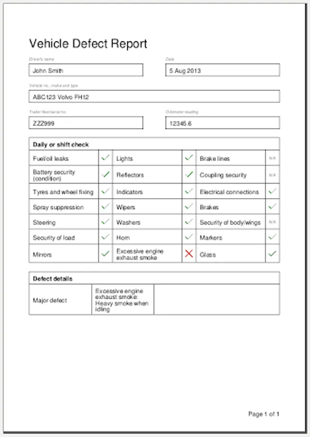 Checklists are included to match the standard VOSA goods and passenger vehicle inspection points. Completely custom checklists can also be created for yourself to match the requirements of your agency.