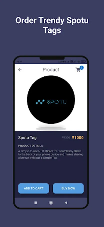 Your Spotu Tag is an attractive and trendy looking card in which you can specify links to all of your social networks and contact details. It can automatically share your Personal, Social and Business Profile, whenever near an NFC enabled phone. Impressive, isn't it? Simply save the contact to your phone's notebook by pressing just one button. Order a tag from the app and have it delivered to your doorstep, in no time.