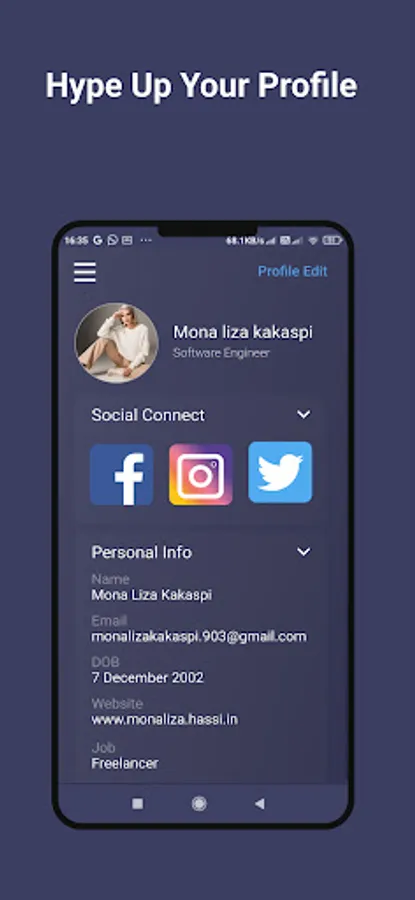 - Speed : Instantly share your profile: social networks, contacts, videos, links, etc.