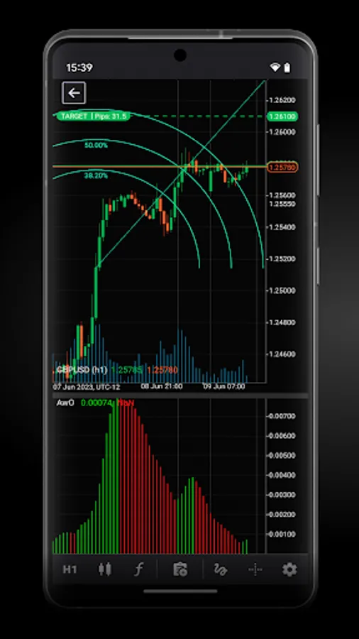 Sophisticated technical analysis tools with advanced settings for all indicators and drawings: