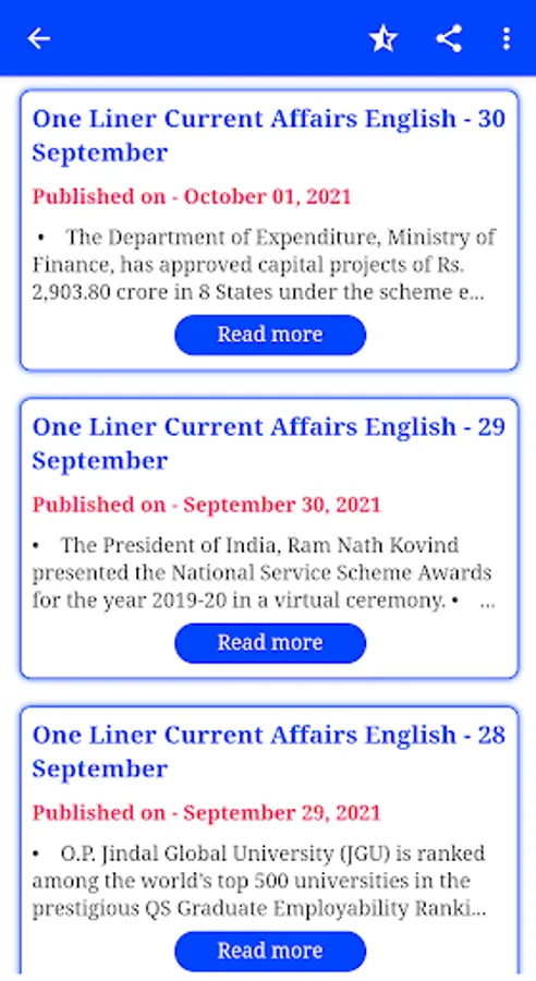 4. One Liner Current Affairs - For providing a better current affairs experience to our users we also included one liner current affairs in this Application.