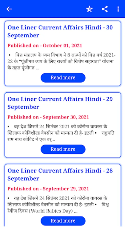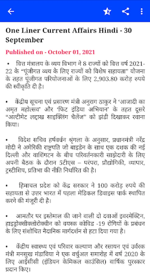 6. One Liner Current Affairs in Hindi - In this category you can read one liner current affairs in Hindi language.