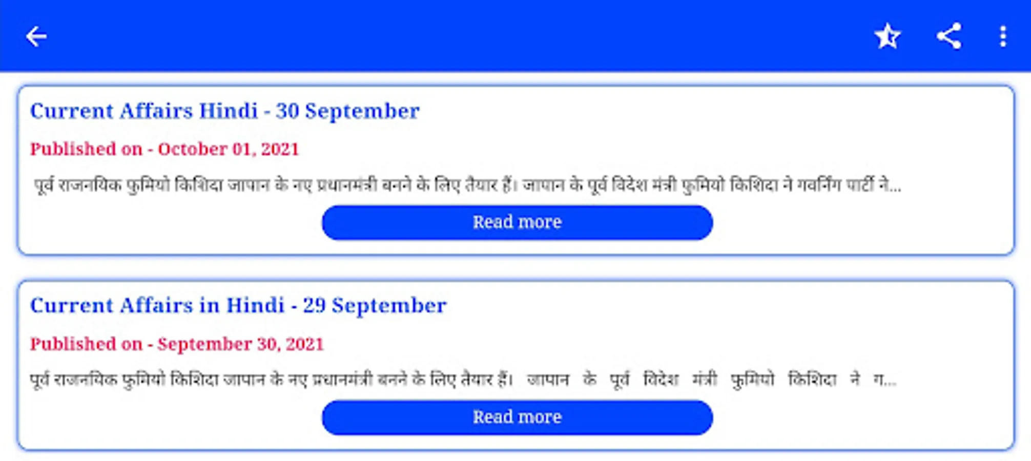 3. Current Affairs in Hindi - In this category you will be provided daily Current Affairs at the right time in Hindi language .