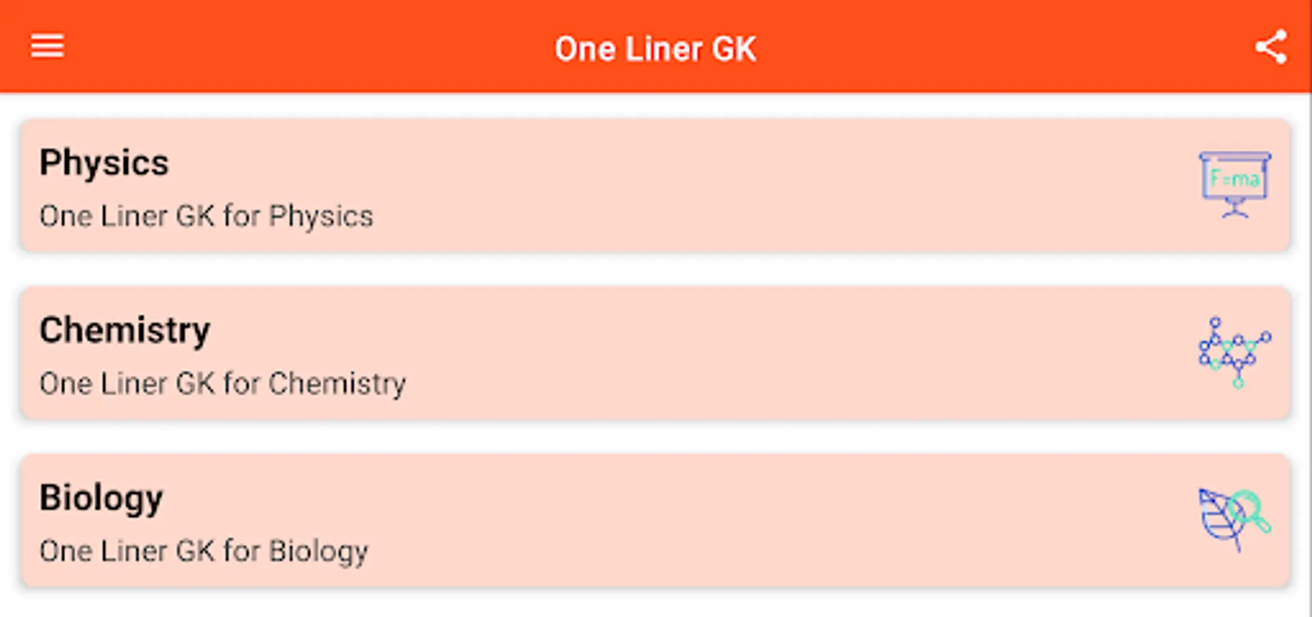 5. Chemistry - This app contains Chemistry One Liner GK in Hindi .