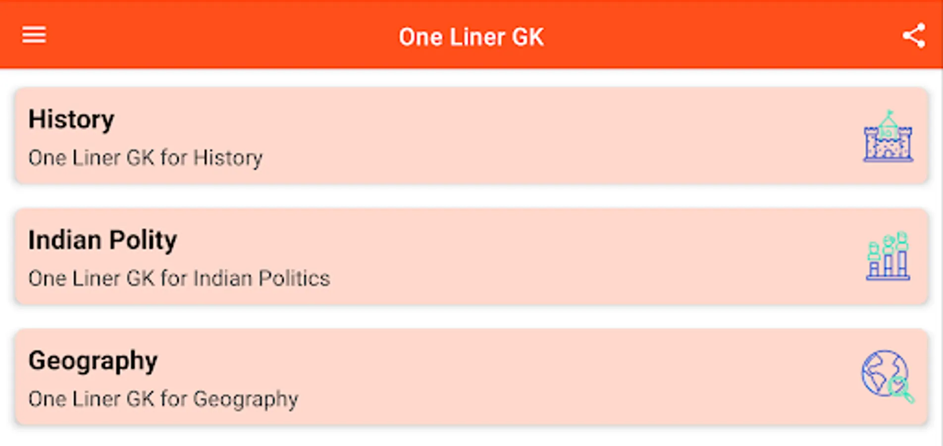 This One Liner GK in Hindi App is also helpful for Competitive Exams , Such As :- SSC CHSL, SSC CGL, IAS 2021, USPC, Railways, Banking, SBI PO, SBI Clerk, IBPS PO, IBPS Clerk, RBI and other Govt. Job Interviews.