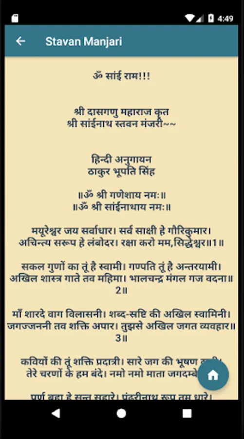Shree Dasganu Maharaj dedicated Shree Stavana Manjari to Sai baba. This was written 36 days before Baba's mahasamadhi.."The Shri Sainath Stavanamanjari" or "A Humble Tribute to Shri Sainath" was one of Das Ganus Compositions, completed on 9th September 1918 at Maheshwar, near Indore, on the banks of Narmada just 37 days before Baba took Samadhi on 15 October 1918. The persistent plea of Das Ganu to Baba is to cleanse him of His sins and to help him and all devotees to overcome their worldly and spiritual difficulties. Baba is compared to the imaginary stone parees which can turn iron into gold. He propagated Shree Sai Life History and Miracles through his Hari Katha through out Maharashtra and other.
