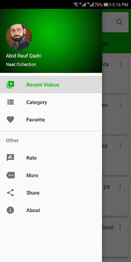 This Application contains naats from famous naat khwan Abid Rauf Qadri