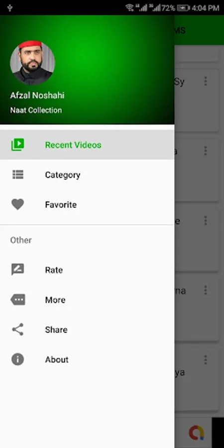 This app contains video naats from famous naat khwaan Afzal Noshahi