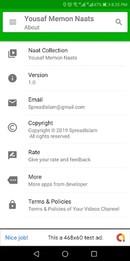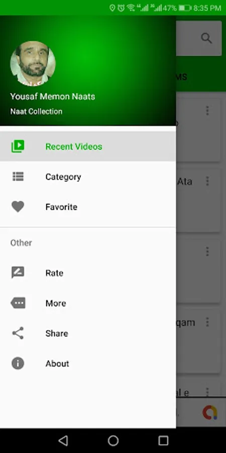 This application contains naats from the famous naat khwaan Alhaj Yousaf Memon. Users can view and listen to his naats. App will be updated upon new release gradually.