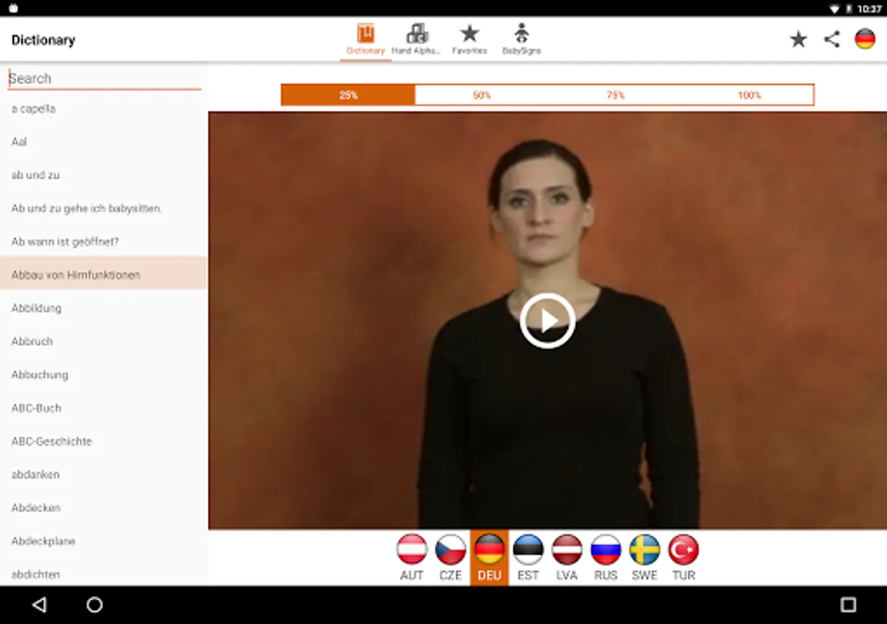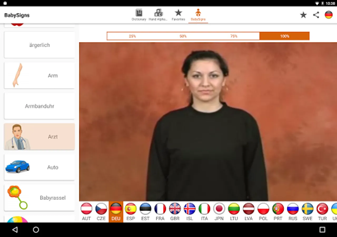 World’s largest sign language dictionary with over 200 000 signs! Learn American, Czech, British, Estonian, French, German, Austrian, Italian, Japanese, Latvian, Lithuanian, Polish, Portuguese, Brazilian, Romanian, Russian, Spanish, Swedish, and Turkish sign language.