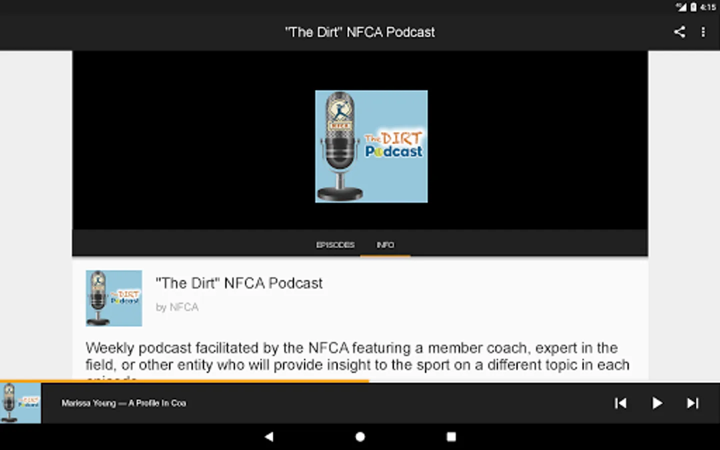 Never miss another episode of "The Dirt" NFCA Podcast thanks to its official app! We'll be covering all your favorite topics with the occasional help of amazing guests. And don't forget to favorite the episodes you like best and to leave a comment if you've got something to say.
