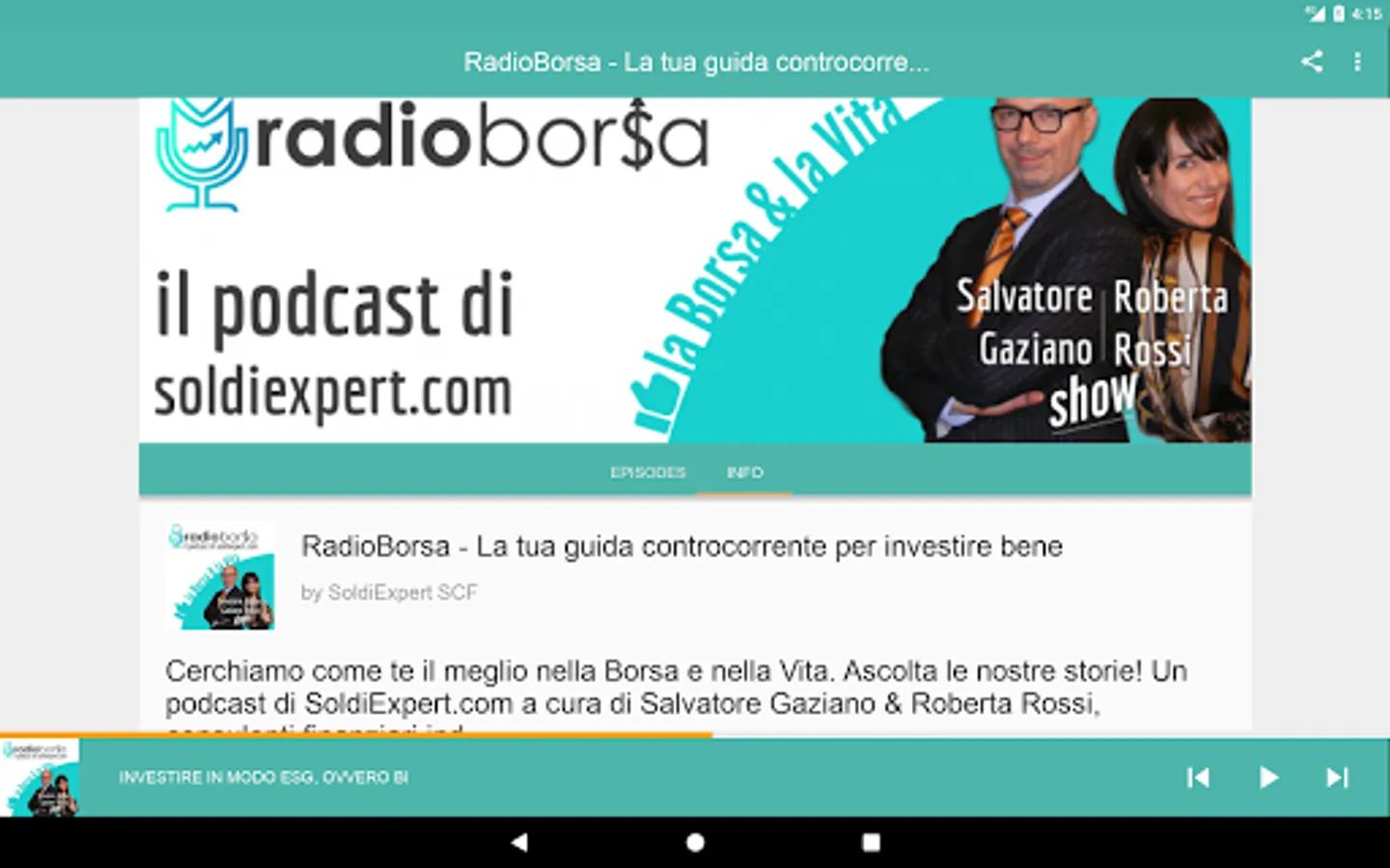 Do not miss any of the episodes of RadioBorsa - Your counter-current guide to investing well in the Stock Exchange and in Life thanks to our official! All your favorite topics along with exceptional guests are at your fingertips. Do not forget then to put your like to the episodes you like most and to interact with us by leaving us a comment.