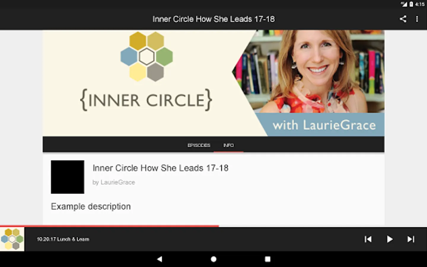 In {Inner Circle} our mission is to maximize how you lead, inspire, and work together with others. In this program, you will learn how to blend together the essential ingredients of stand-out leadership into a formula that maximizes and transforms your achievement, impact, and contribution. With this app, you will be able to listen to podcasts and audio files including workshops and Lunch & Learn programs that take place throughout the year. For further information visit http://www.lauriegracebouldin.com