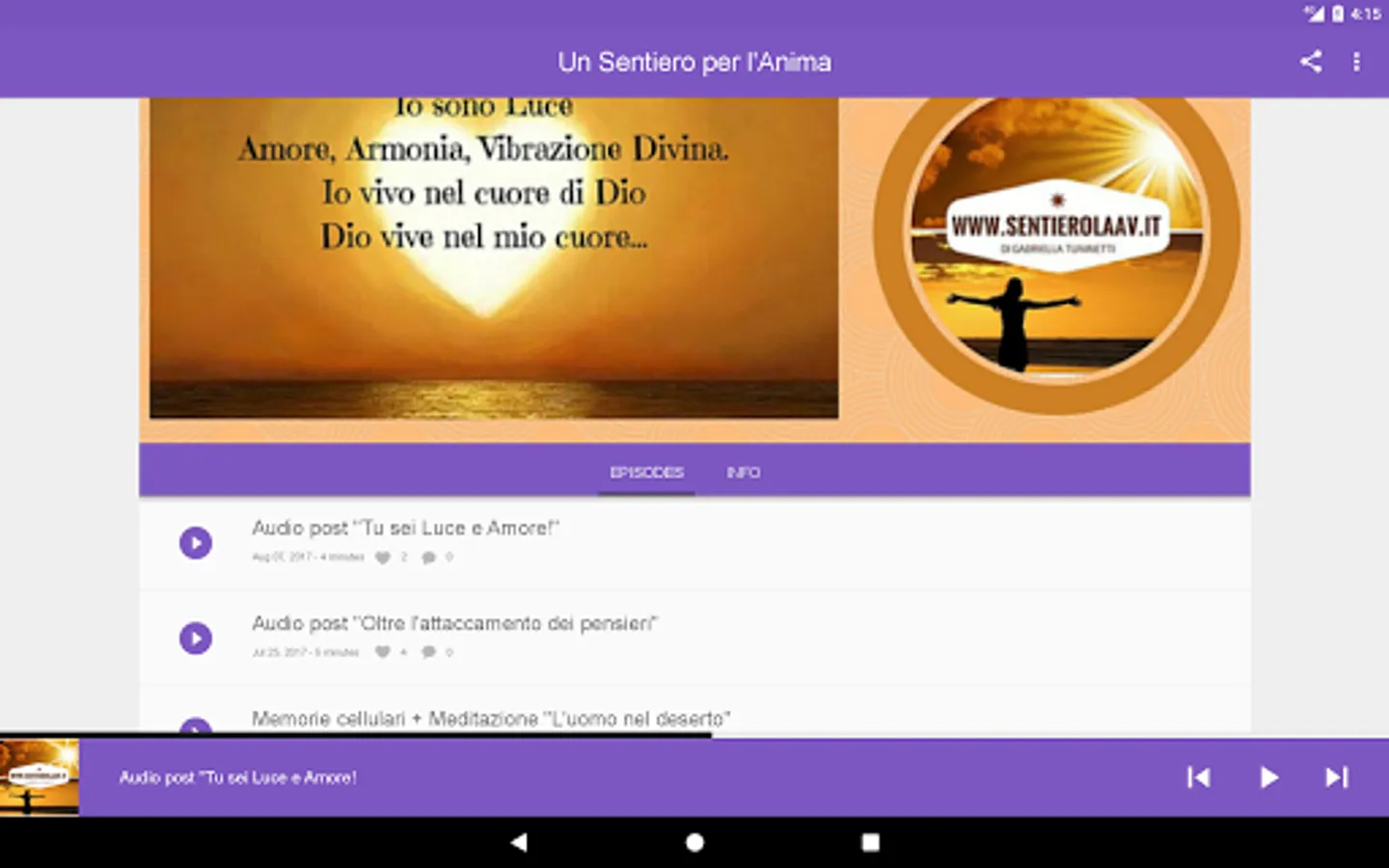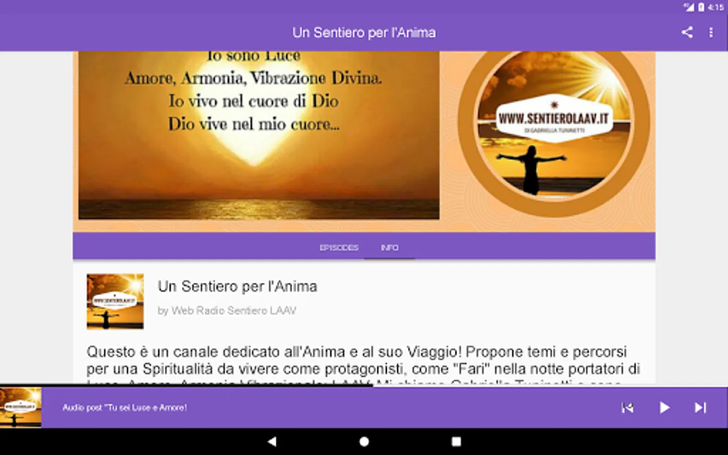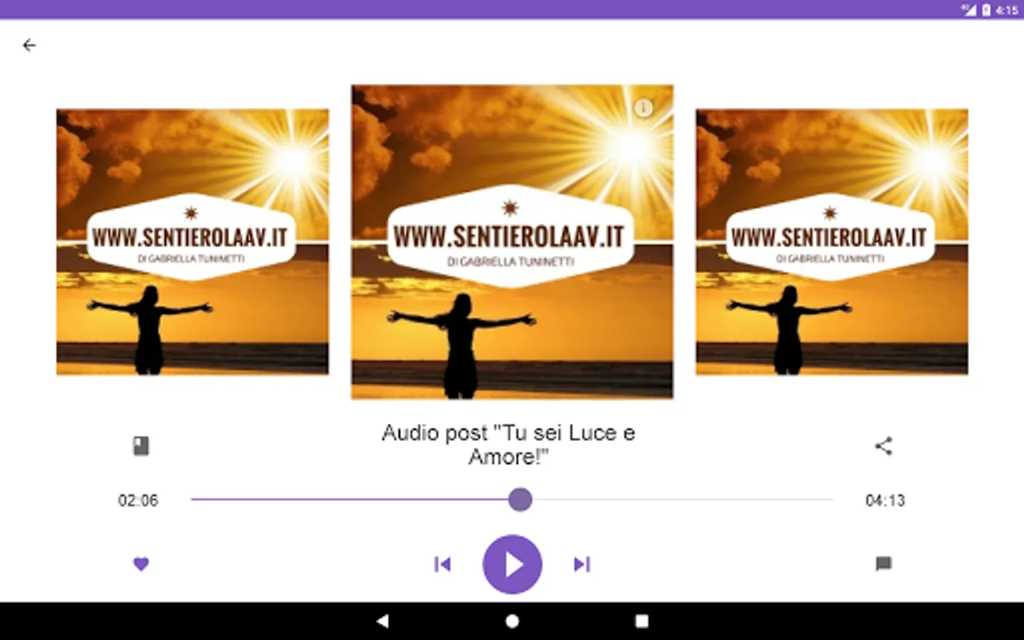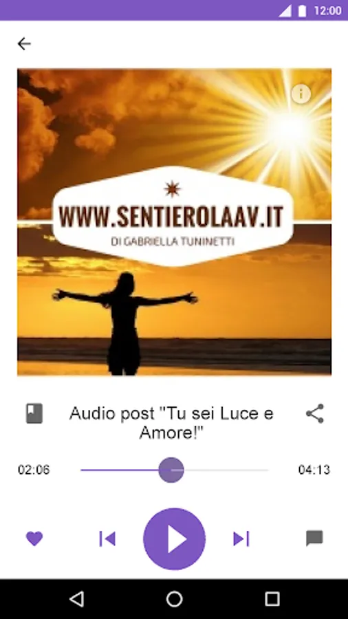 By downloading the APP you will have access to over 100+ free audio tracks of betting, spiritual teachings and guided meditations. Learn the language of the soul and start your meditation LAAV today, you are welcome! (Gabriella Tuninetti)