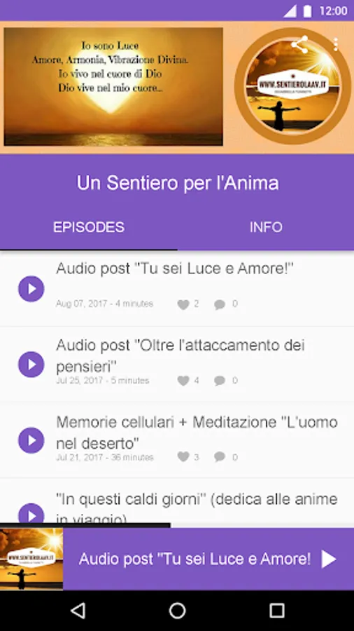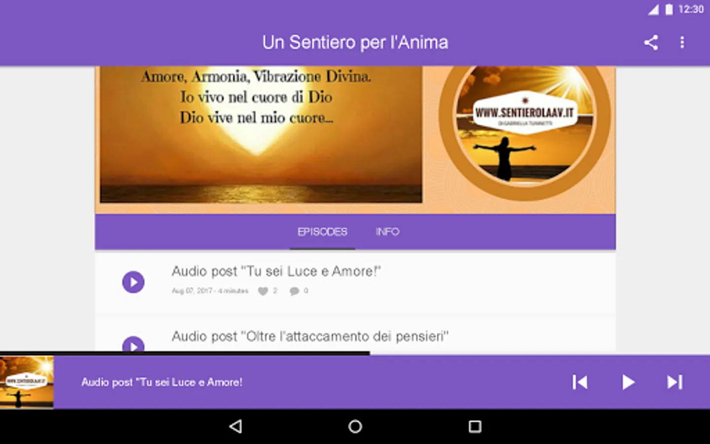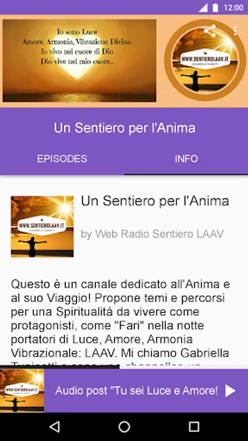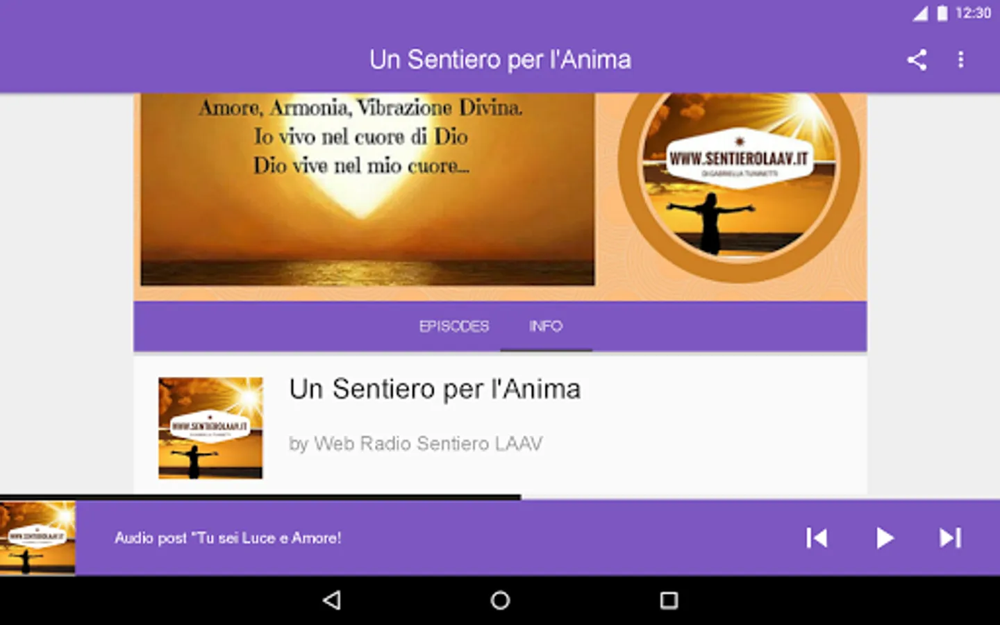 By downloading the APP you will have access to over 100+ free audio tracks of betting, spiritual teachings and guided meditations. Learn the language of the soul and start your meditation LAAV today, you are welcome! (Gabriella Tuninetti)