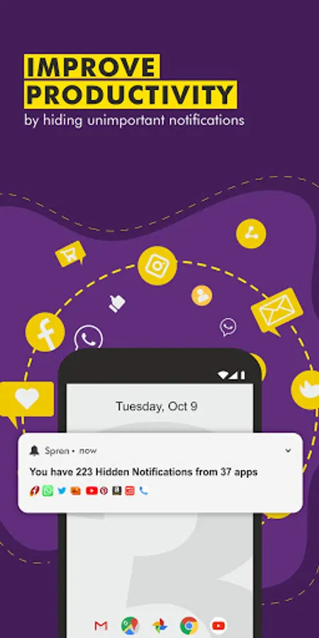 Spren is a smart notification Manager , Assistant , Cleaner ,Blocker for your Android device. Receive important notifications instantly while rest are hidden ,safely stored and organized in Spren for you to go through at your convenience. Spren helps you focus by reducing distractions while decluttering your Notifications. No more having to deal with so many notifications that you just clear everything away!! We manage notifications by using state of the art private on-device machine learning to filter notifications that don't need your immediate attention and can be read and acted upon when you actually want to.