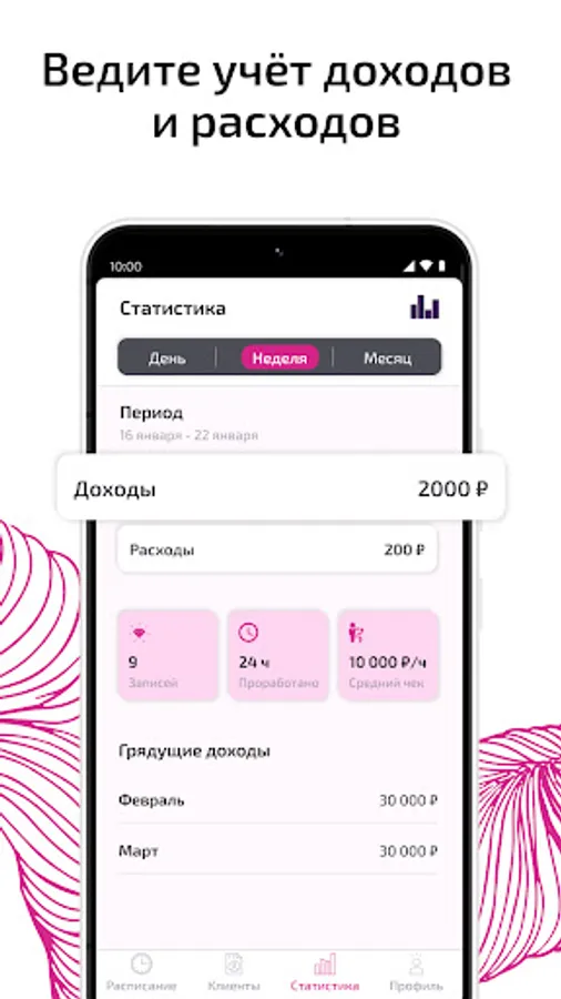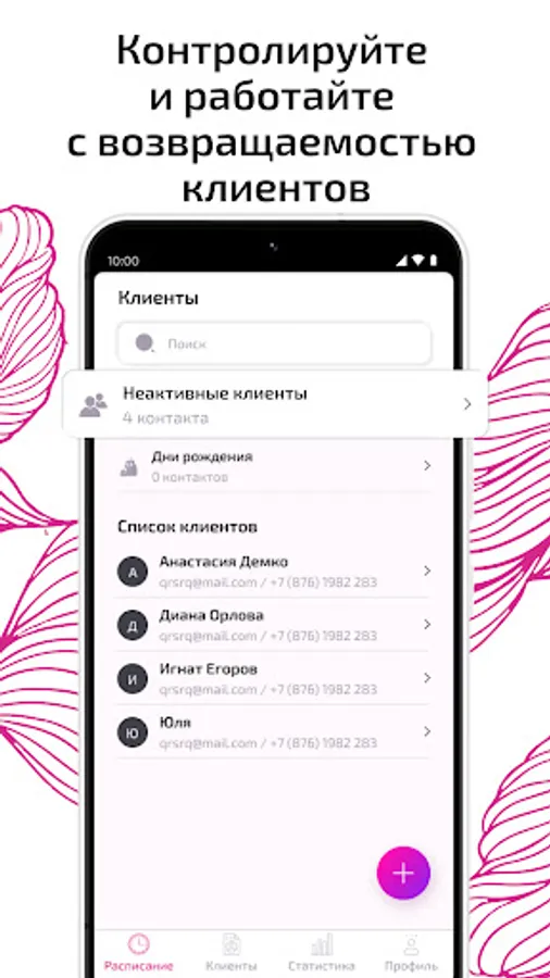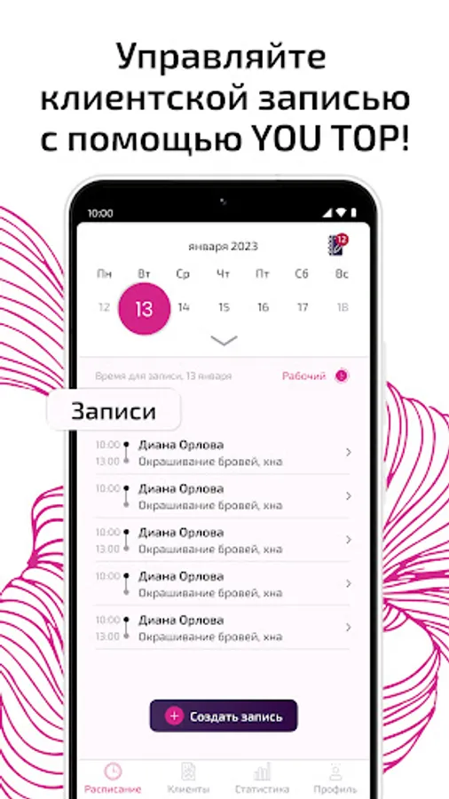 The application is convenient to use to record clients in various specialties: manicure and pedicure masters, hairdressers, eyelash extensions, stylists, cosmetologists, makeup artists, epilation and depilation masters, fitness trainers, masseurs, barbers and others.