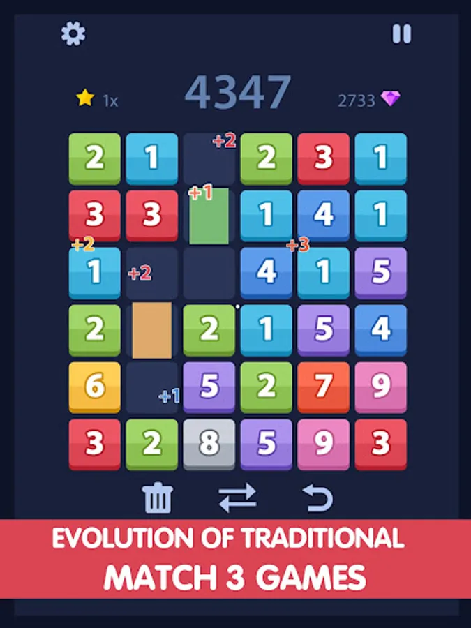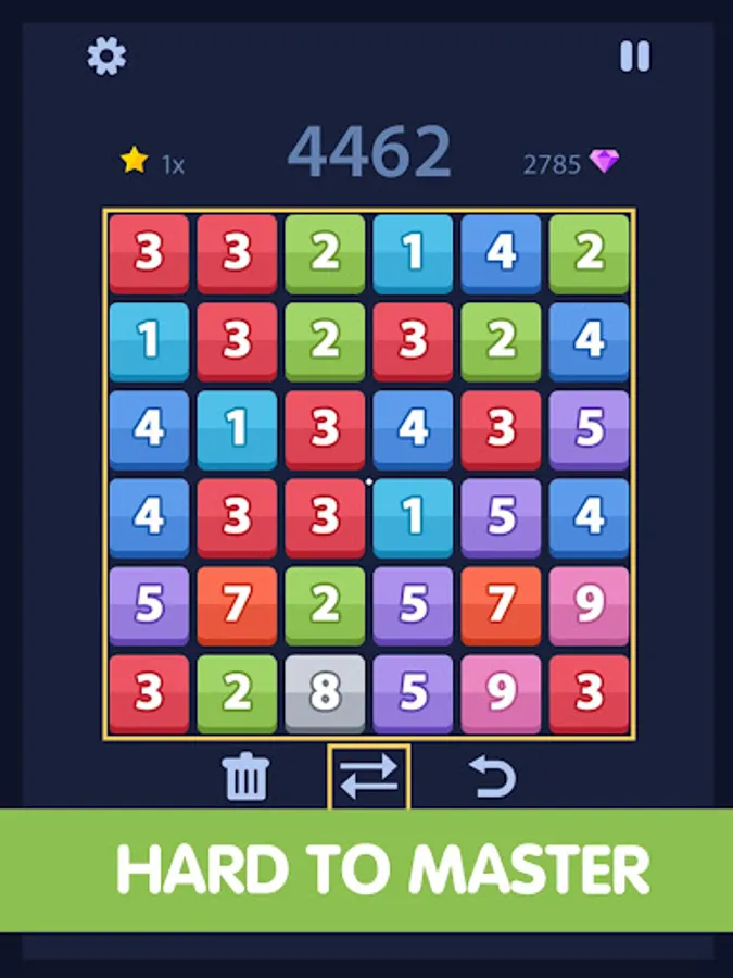 Try to match the same number in colorful tiles by swap two numbers to grow up.