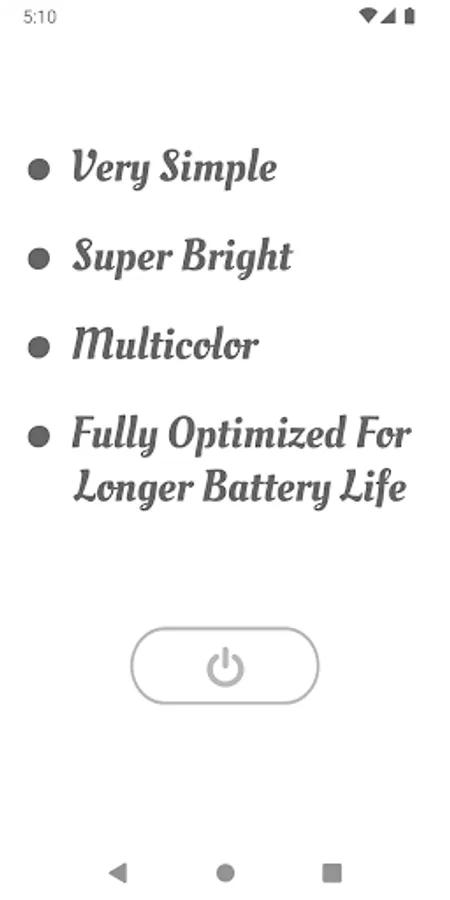 This simplest RGB Flashlight app provides the most modern, stylish user interface and functionality to lighten those dark places where we use to be in our daily life tasks with multiple colors by using the screen of your device. It functions great and beautifully designed with amazing and unique looks, so getting in dark places will never get scary and boring anymore. This simple flashlight app is designed to use your phone or tablet screen at maximum brightness without making your device hot for hours and more. This simple screen flashlight app is the best choice for those who are looking for an alternative of lamps, LED torch lights and want the coolest color flashlight app in their phone and tablet devices.