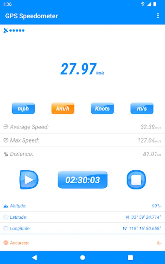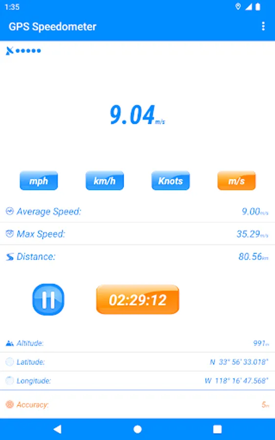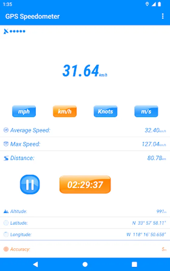 This GPS Speedometer is an advanced app that uses the device's built-in GPS to show your "Current speed", "Average speed", "Maximum speed", "Distance covered", "Altitude", "Latitude" and "Longitude" with start, stop and reset journey's "Timer" functionality.