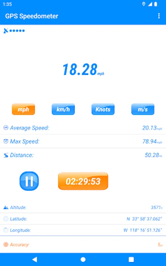 This digital GPS Speedometer app is highly recommended if you use to travel mostly either by walk, running, riding a bike, driving a car, in an airplane, on a cruise ship, if you are racing on a track day or speeding in open water with your speedboat. With this offline GPS Speedometer app you can easily find your location according to GPS coordinates in real-time without having any access to the Internet. This simple GPS Speedometer app is well optimized to give the best performance with even fewer resources and designed with a modern, fresh looking simple user interface. It is fast, uses less device memory, doesn't affect battery life and performance of your device.