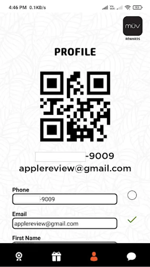 - Add your phone number to register with MÜV Rewards; a pin will be sent to the