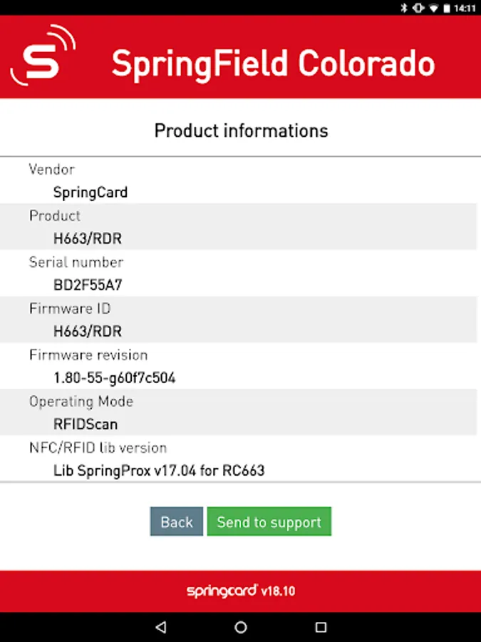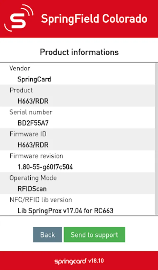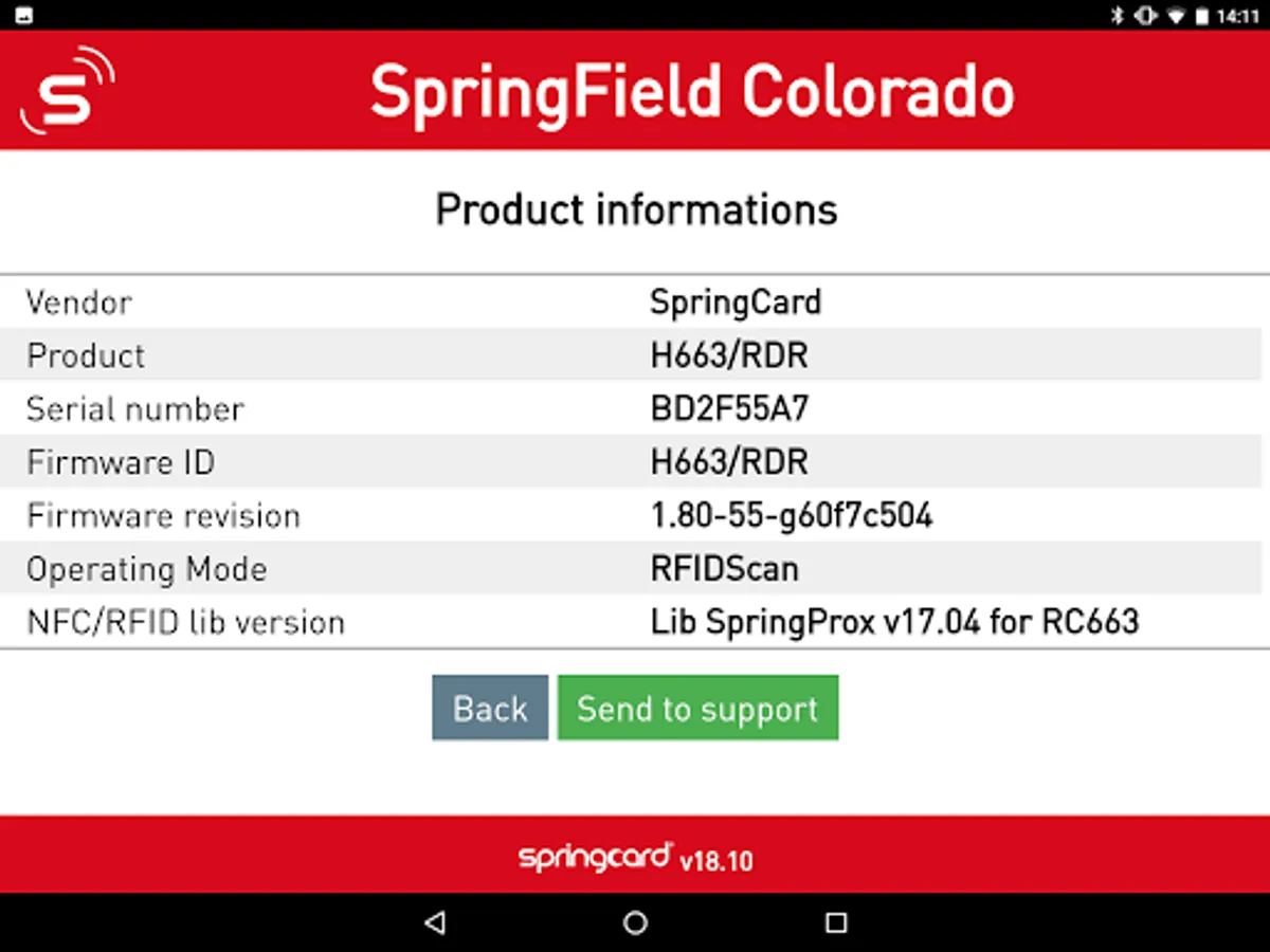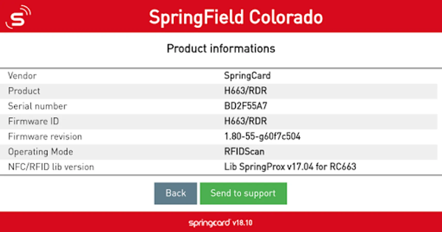 Using a SpringCard smart reader (/RDR, RFID Scanner, FunkyGate…) or a custom reader designed by SpringCard? During a field intervention, ever been puzzled to determine which actual firmware has been installed here and there, whether this very device needs a firmware upgrade or not? Thanks to SpringField Colorado, getting all the device’s informations is now as easy as swiping your Android smartphone over the reader!