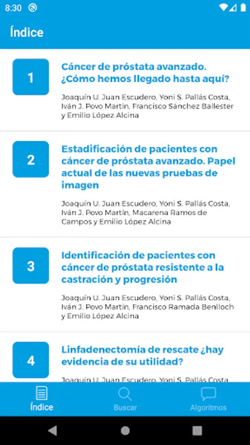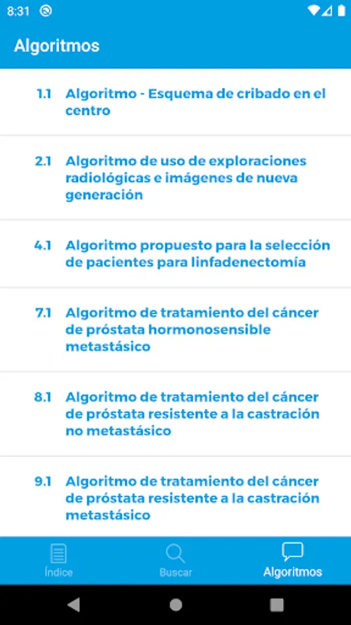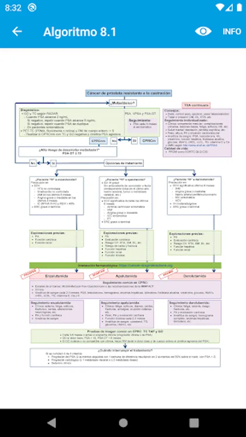 Prostate cancer (PC) is the second most frequently diagnosed neoplasm in men after lung cancer. The growing complexity of managing this pathology highlights the need to develop current clinical practice guidelines to provide a knowledge base that allows for a comprehensive approach to the patient based on the best available scientific evidence. The Clinical Practice Guideline for the management of ADVANCED PROSTATE CANCER analyzes the diagnosis and multidisciplinary treatment of advanced prostate cancer in its different stages, considering the different prognostic factors and the current stage of research in this area. . Likewise, it highlights the value and use of diagnostic imaging and genetic tests when it comes to maximizing therapeutic results, avoiding treatments and side effects.